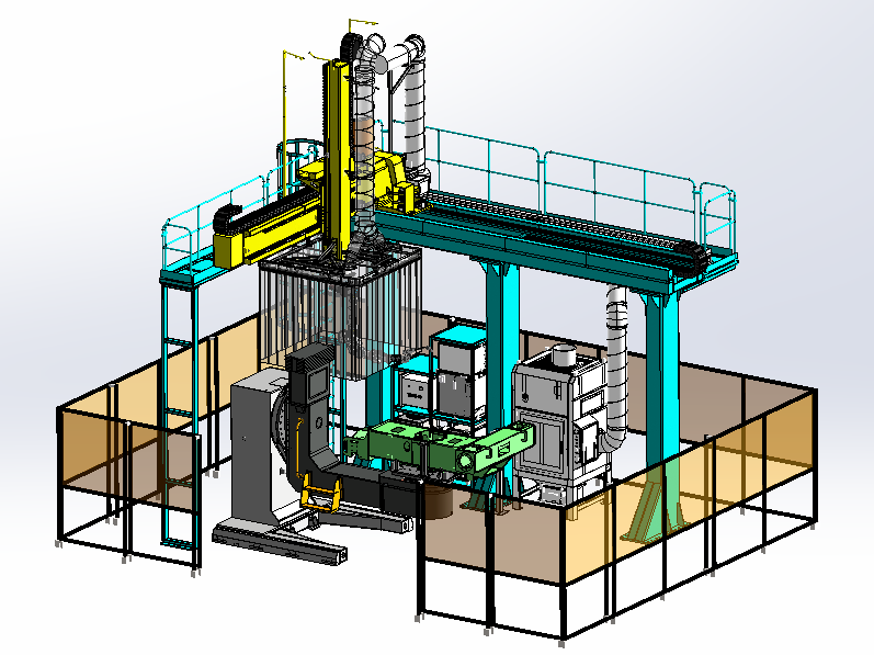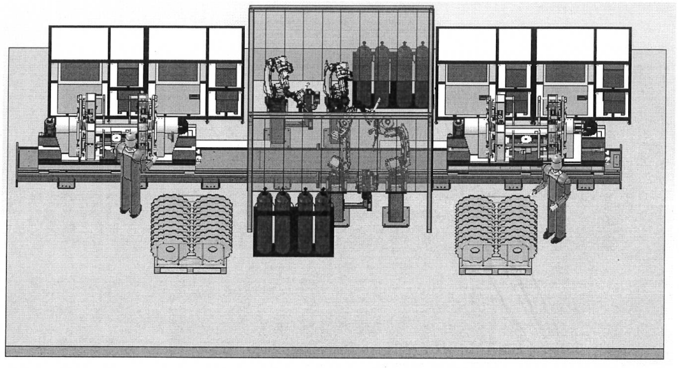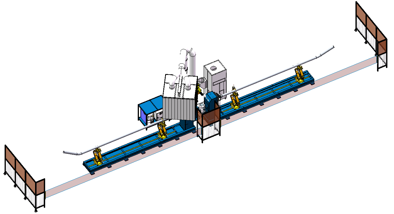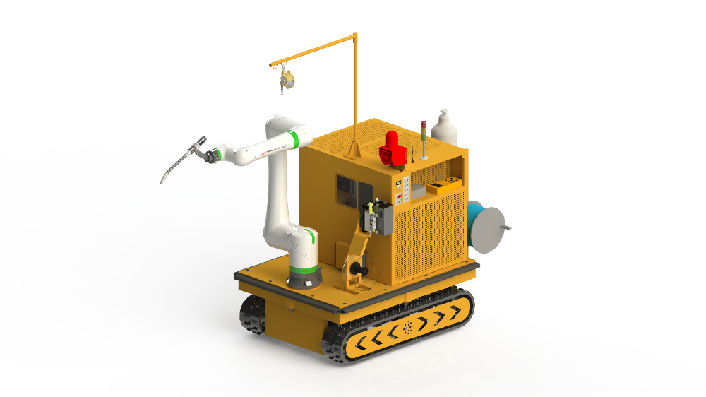 5機(jī)聯(lián)動(dòng)機(jī)器人焊接系統(tǒng);變位機(jī)承載能力達(dá)到1噸,適用于多型號(hào)動(dòng)臂斗桿結(jié)構(gòu)件的焊接;反變形及夾緊定位一體化設(shè)計(jì)伺服夾具,與工件自 動(dòng)化柔性輸送系統(tǒng)配合,可實(shí)現(xiàn)多種型號(hào)工件的自動(dòng)裝夾。